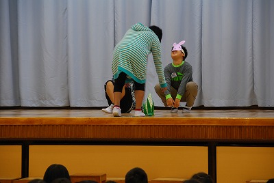 また寸劇では、ウサギに雑草を与えてはいけないことを