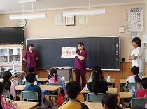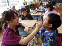 3年生を対象に、学校歯科医の粟澤先生と歯科衛生士の
