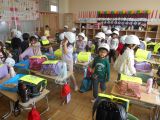 4月14日(火)新学期が始まって5日目。係や当番決めなども終わり、授業が本格的に始まりました。学年が1つ上がった子たちは、新しい先生のもと、しっかりとした態度で授業に取り組んでいます。2~6年生が授業をがんばっている頃、1年生は帰りの準備をしていました。1年生は15日まで3時間授業です。
