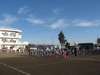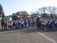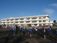 走り終えた子どもたちが学年ごとに整列し行進する際の