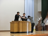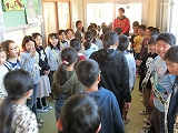 お富ちゃん給食のついて、給食委員さんに放送でお知らせをしてもらいました。