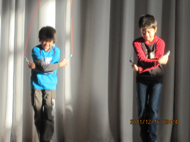 毎年恒例で、冬休みを目前にひかえ「縄跳びの跳び方」を紹介しています。