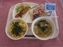 4月21日(火)1年生を迎える会がありました。背の高い6年生に手を引かれて入場すると、2年生からプレゼントのメダルをかけてもらいました。学校生活に慣れるまでもう少し時間がかかる思いますが、優しいお兄さんやお姉さんに教わりながら少しずつ成長していってほしいです。給食の配膳は24日まで6年生がやってくれます。1年生は、「おいしい、おいしい」と言ってお行儀よく食べていました。