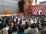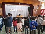 はじめに校歌を歌って、次に〇✕クイズを行い、