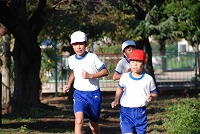 元気に走る岡部西小学校の子どもたちの姿が