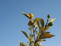 職員室前に植えられたキンカンが色づかせている実の色も