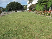 -校舎前の芝生を刈り込んでいただきました-