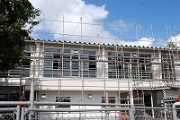 9月3日(水)、改装工事中の体育館を覆っていたシートが取り外され、