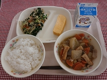 4月21日(火)1年生を迎える会がありました。背の高い6年生に手を引かれて入場すると、2年生からプレゼントのメダルをかけてもらいました。学校生活に慣れるまでもう少し時間がかかる思いますが、優しいお兄さんやお姉さんに教わりながら少しずつ成長していってほしいです。給食の配膳は24日まで6年生がやってくれます。1年生は、「おいしい、おいしい」と言ってお行儀よく食べていました。