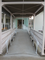 校舎から体育館につながる通路はゆるやかなスロープになっていますし、