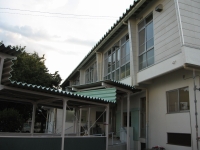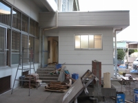 その雨よけの屋根や体育館のドアは