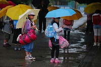 岡部でも2時過ぎから雨が降り始めたため、閉校式は体育館で行いました。