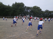 ダッシュの2,4,6年生は、隣の子と競争しながら走り、瞬発力を高めました。