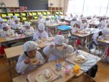 4月21日(火)1年生を迎える会がありました。背の高い6年生に手を引かれて入場すると、2年生からプレゼントのメダルをかけてもらいました。学校生活に慣れるまでもう少し時間がかかる思いますが、優しいお兄さんやお姉さんに教わりながら少しずつ成長していってほしいです。給食の配膳は24日まで6年生がやってくれます。1年生は、「おいしい、おいしい」と言ってお行儀よく食べていました。