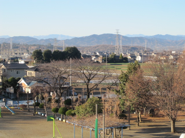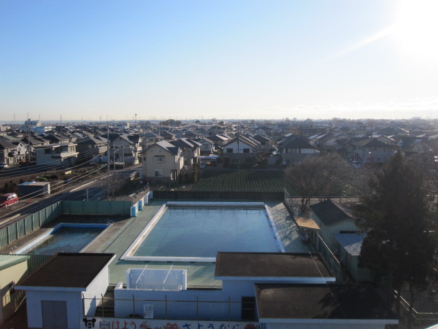 (プール越しの東の太陽) (南に秩父連峰を望み) (北に赤城山を望む)
