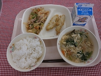 4月21日(火)1年生を迎える会がありました。背の高い6年生に手を引かれて入場すると、2年生からプレゼントのメダルをかけてもらいました。学校生活に慣れるまでもう少し時間がかかる思いますが、優しいお兄さんやお姉さんに教わりながら少しずつ成長していってほしいです。給食の配膳は24日まで6年生がやってくれます。1年生は、「おいしい、おいしい」と言ってお行儀よく食べていました。