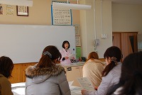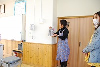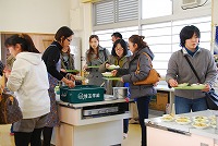 4校時の時間には、家庭科室で、給食センターの小柏先生に
