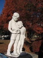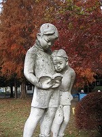 二人の子が一緒に本を読んでいる「なかよし像」があります。