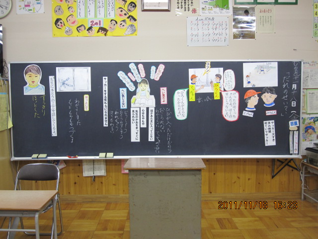 そのまま教室にもどってしまった主人公の、心の葛藤を取り上げた資料でした。