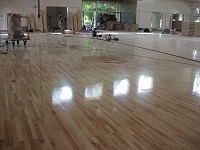 ピカピカの新しい床です!輝いています! 昇降式の照明と屋根の補強材