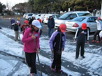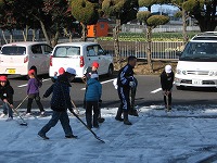 半ば凍った雪を取り除く作業に取り組んでもらいました。