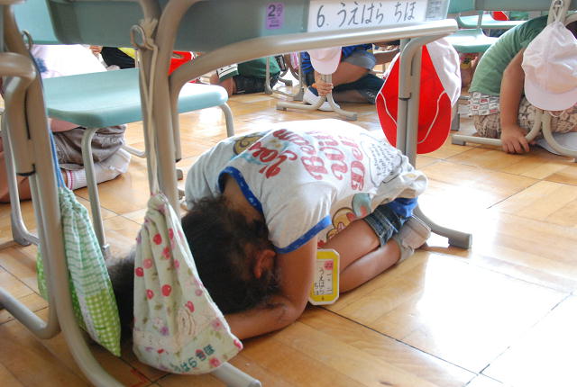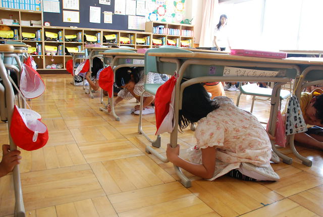 教室にいたのなら机の下に入り身を守るのがよい方法です。