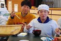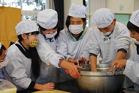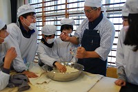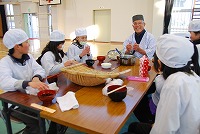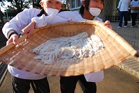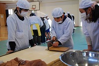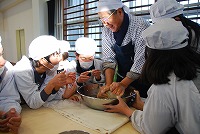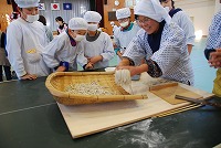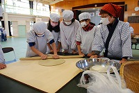 6年生がそば打ちと調理に取り組みました。