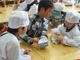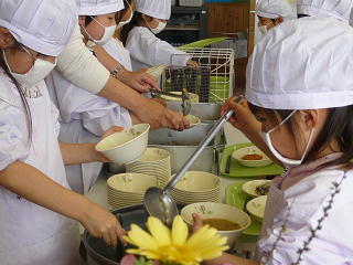 4時間目は給食の準備の授業でした