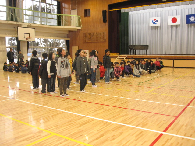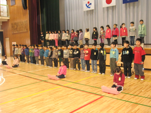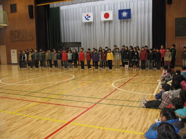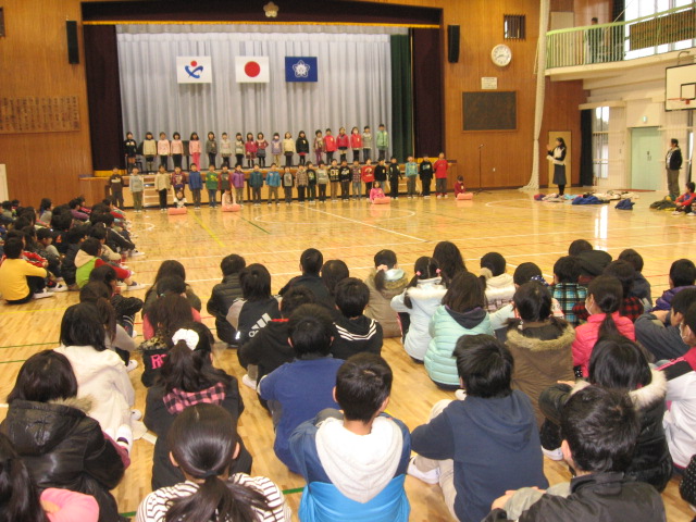 全員で元気よく暗唱し、寒さを吹き飛ばしました。