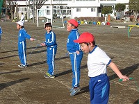ほとんどの子が冷たい空気の中でも元気に縄跳びに取り組めました。