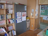 職員室側の入り口を入ってすぐ右手の書架にあります。