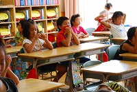 お兄さん・お姉さんがつくった俳句を見たりしていた1年生。