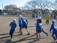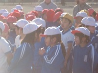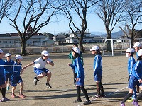 今朝も真っ青な空のもと岡部西小の子どもたちが躍動しました