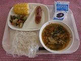 今日の給食は、岡部産とうもろこしの