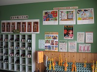 書き初めと図工の素敵な作品が飾られています。