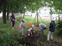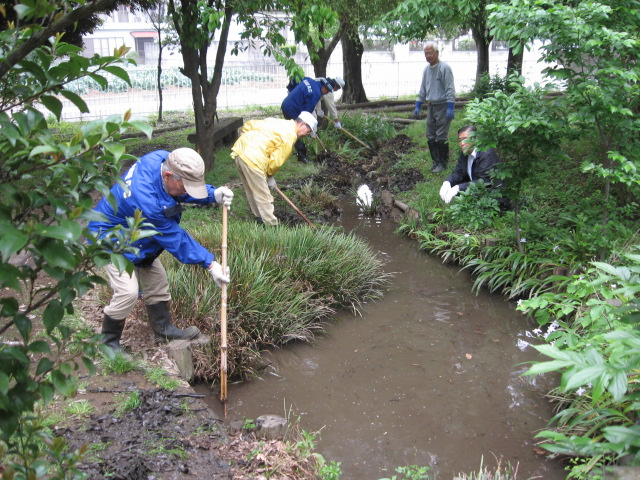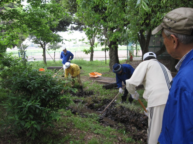 池周りの草取りをしたり、土を掘り起こして水の流れをよくしたりしていただくと、