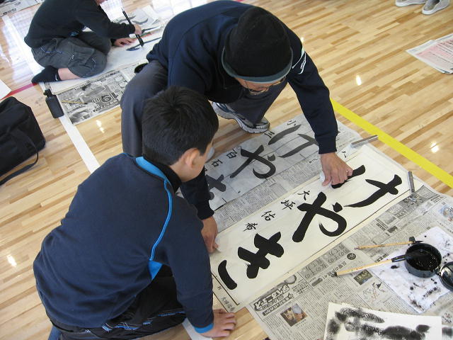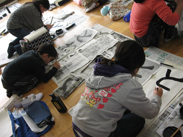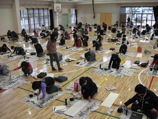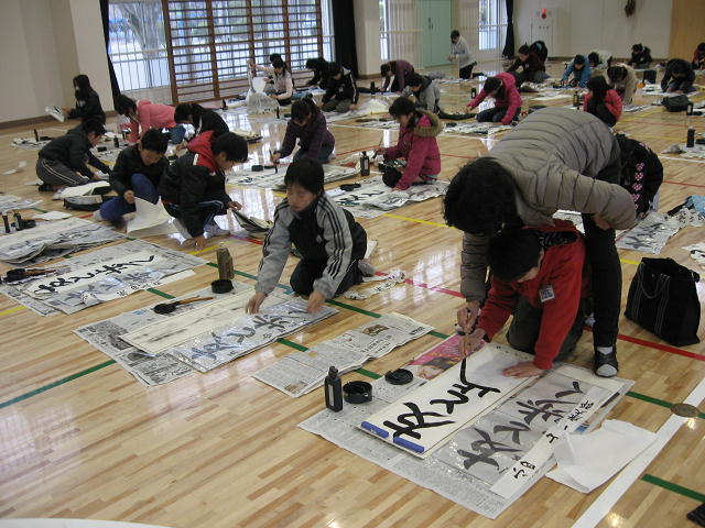 本日は、岡部西小学校、書きぞめ制作会です。