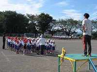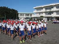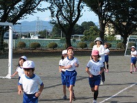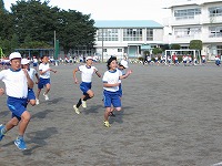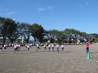 感じられる秋空のもとで、岡部西小学校の駿馬たちが駆けめぐる