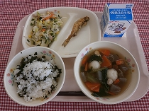 4月21日(火)1年生を迎える会がありました。背の高い6年生に手を引かれて入場すると、2年生からプレゼントのメダルをかけてもらいました。学校生活に慣れるまでもう少し時間がかかる思いますが、優しいお兄さんやお姉さんに教わりながら少しずつ成長していってほしいです。給食の配膳は24日まで6年生がやってくれます。1年生は、「おいしい、おいしい」と言ってお行儀よく食べていました。