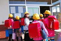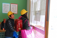 クラス発表の掲示を前に子どもたちの歓声が上がります。