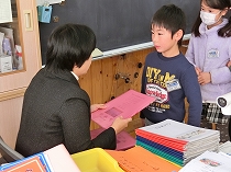 先生から一人一人手渡しで受け取りました。