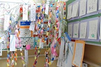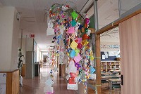 岡部西小学校でも負けずに七夕飾りが2階の廊下に並びました。
