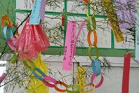 飾りと願いごとが書かれた短冊で重そうにしなっています。