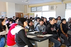 6年生のお兄さん、お姉さんから給食の準備の仕方や配膳を教えてもらっていました。