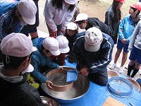 唐箕(とうみ)や石臼(いしうす)といった道具に初めてふれる子が多く、