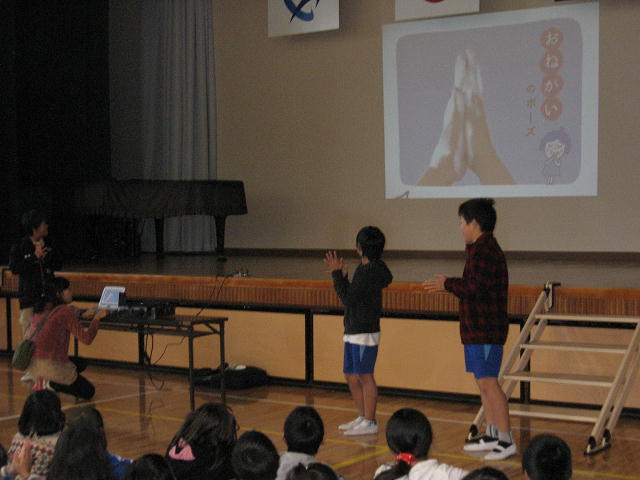 ○×クイズ、寸劇、手洗いの仕方などの内容でした。
