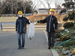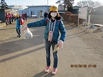 冷たい空気の中で、アルミ缶をもって登校する姿があります。
